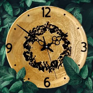 Turkuaz Kurutulmuş Çiçekli 35×35 Epoksi Duvar Saati
